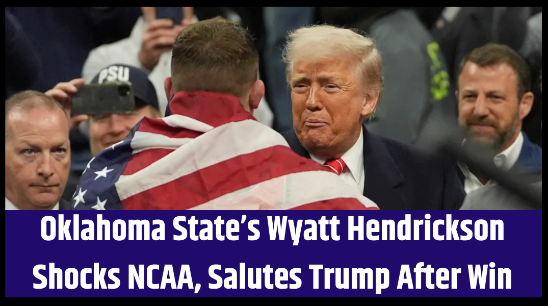 Oklahoma State wrestler Wyatt Hendrickson celebrated his unexpected triumph at the NCAA Wrestling Championship with a salute to former President Donald Trump, who was seated mat-side for the intense showdown.